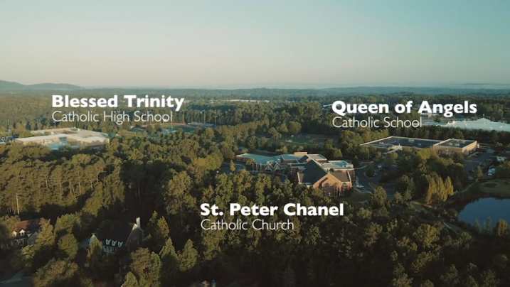 Situated on more than 100 acres, Queen of Angels Catholic School shares a beautiful, serene campus with St. Peter Chanel Catholic Church, Blessed Trinity Catholic High School, and St. George's Village. Although each operates independently, families have the opportunity to worship, learn and share in a faith community through the parish, elementary school, and high school.